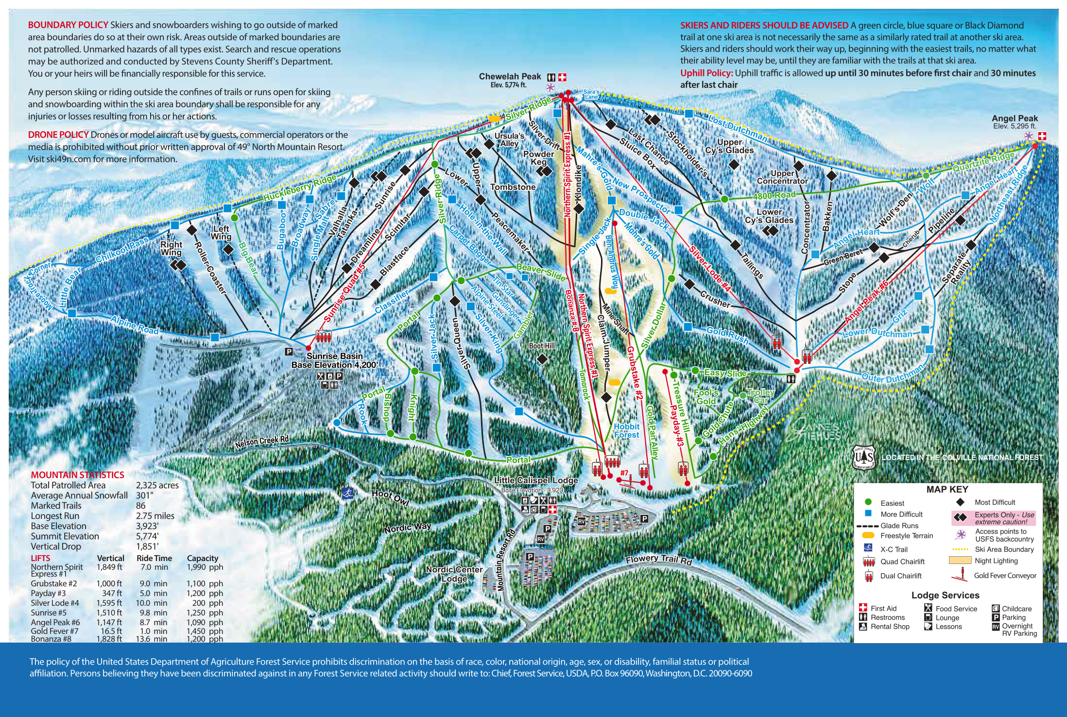 49° North is north of Spokane, WA in the remote northeast corner of Washington. It’s really close to Idaho but still feels very much like a Washington resort. This review is based on one visit during below average mid-season conditions due to a rain crust off-piste.