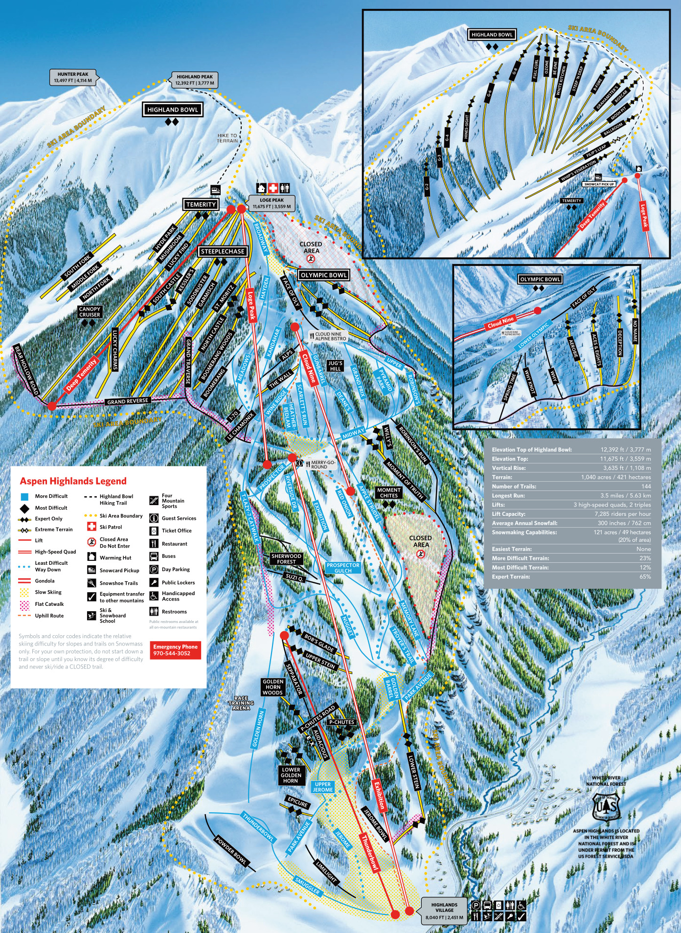 Aspen Highlands is one of the 3 major resorts surrounding the famous skiing and celebrity mecca of Aspen. It languished in the shadow of Snowmass and Aspen Mountain for decades, but since the Highlands Bowl hike-to terrain and High Temerity lift opened it’s turned into a popular option. For this review we visited once under firm conditions, but I (Ron) visited multiple times back in the 70’s and 80’s so our combined experience is a little broader than just a single visit.