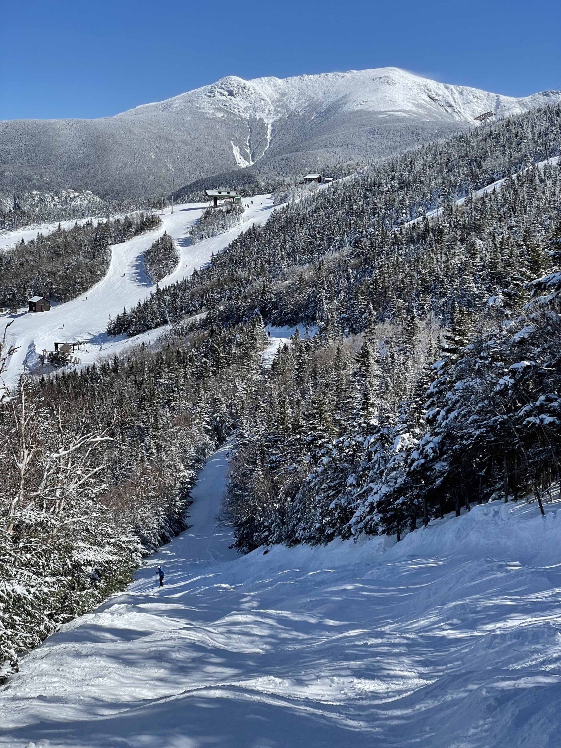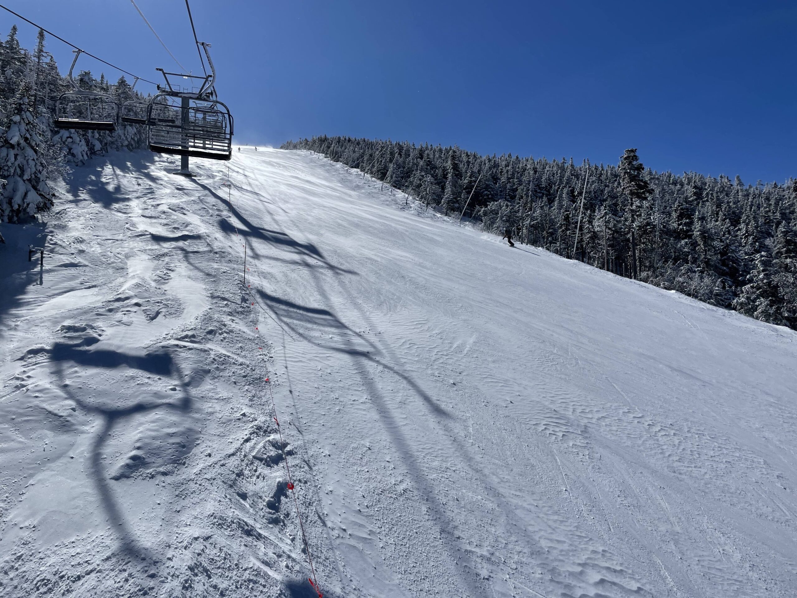 We happened to ski it on a beautiful bluebird day, but the wind was absolutely ripping at the top so we got to experience some of the famous wind that Cannon is known for. It didn’t affect our day at all because it wasn’t that cold and the wind was not affecting lift operations, but I’m sure on a cold day with closed lifts it’s a whole different experience.