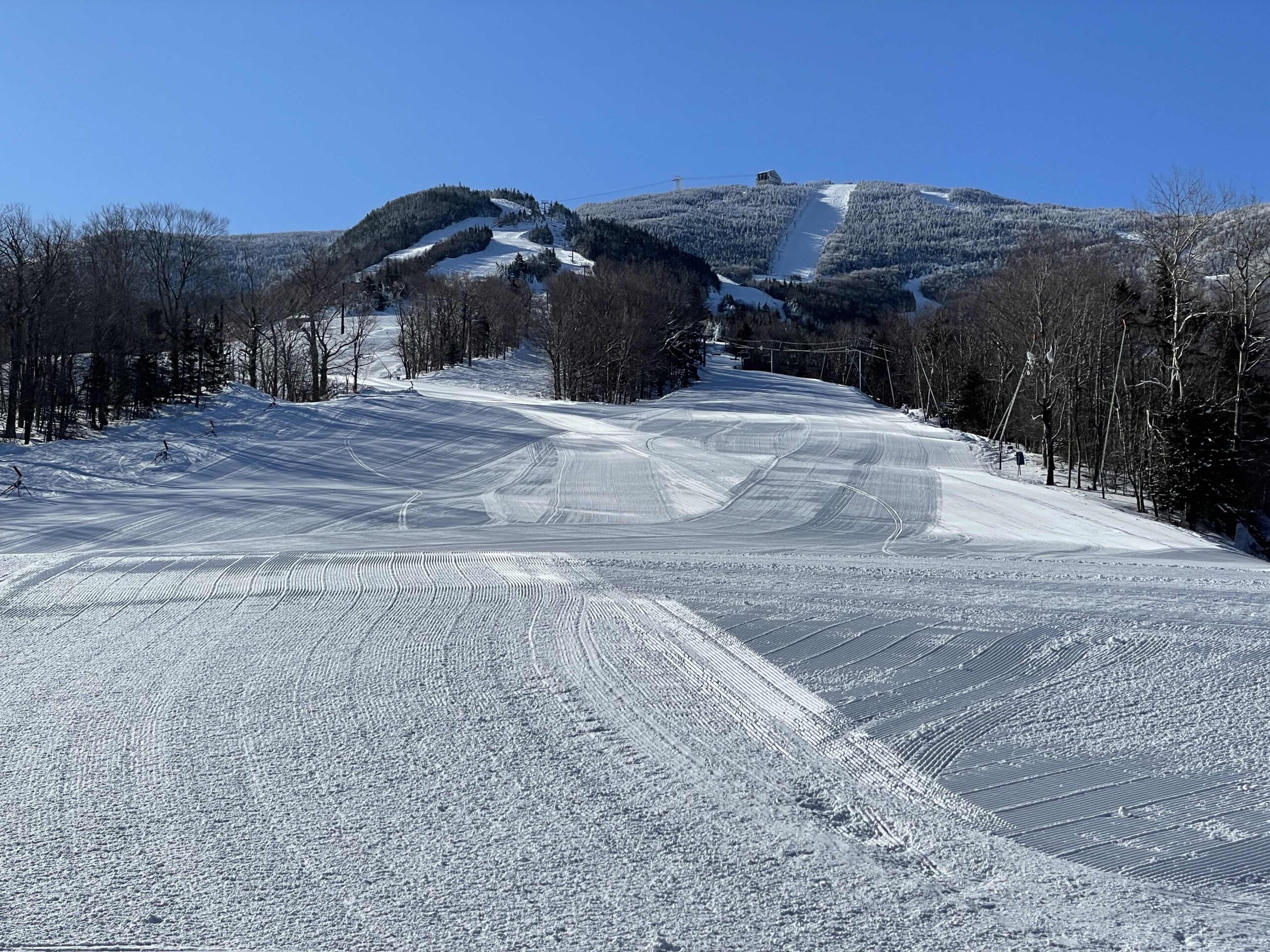 The Mittersill double is only open on weekends but we did venture over there to ride the T-Bar on the racing hill. The Mittersill base seems to be entirely dedicated to ski race training. It’s isolated from the rest of the resort and requires crossing through the very flat Tuckerbrook zone. We never got to sample the interesting advanced runs above the T-bar because you can’t get there without a serious uphill slog on “The Saddle”. On the map it looks flat but it’s a pretty significant climb in real life.