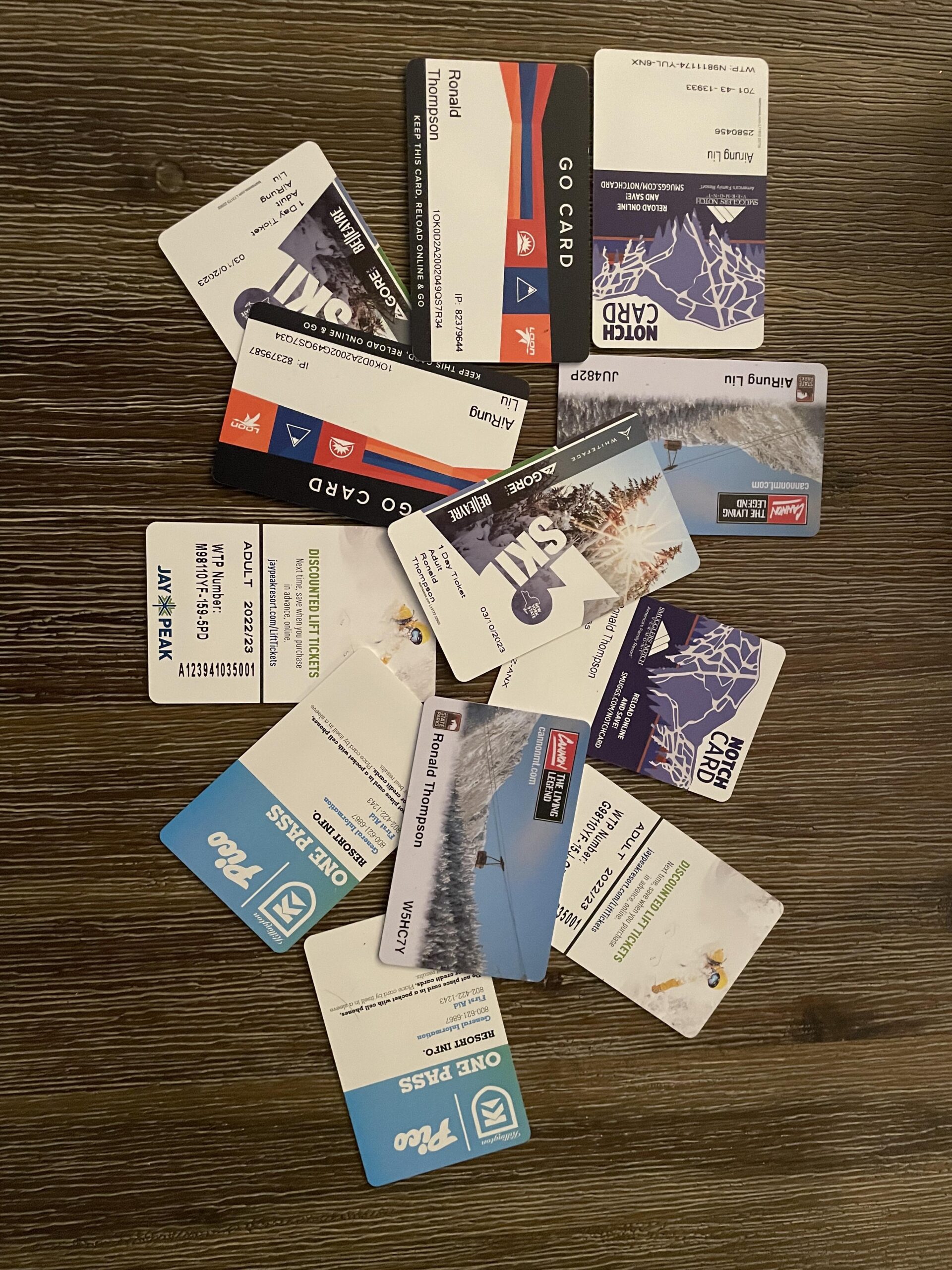 This is what $2,000 worth of lift tickets looks like these days. Some have multiple days on them if you are doing the math!