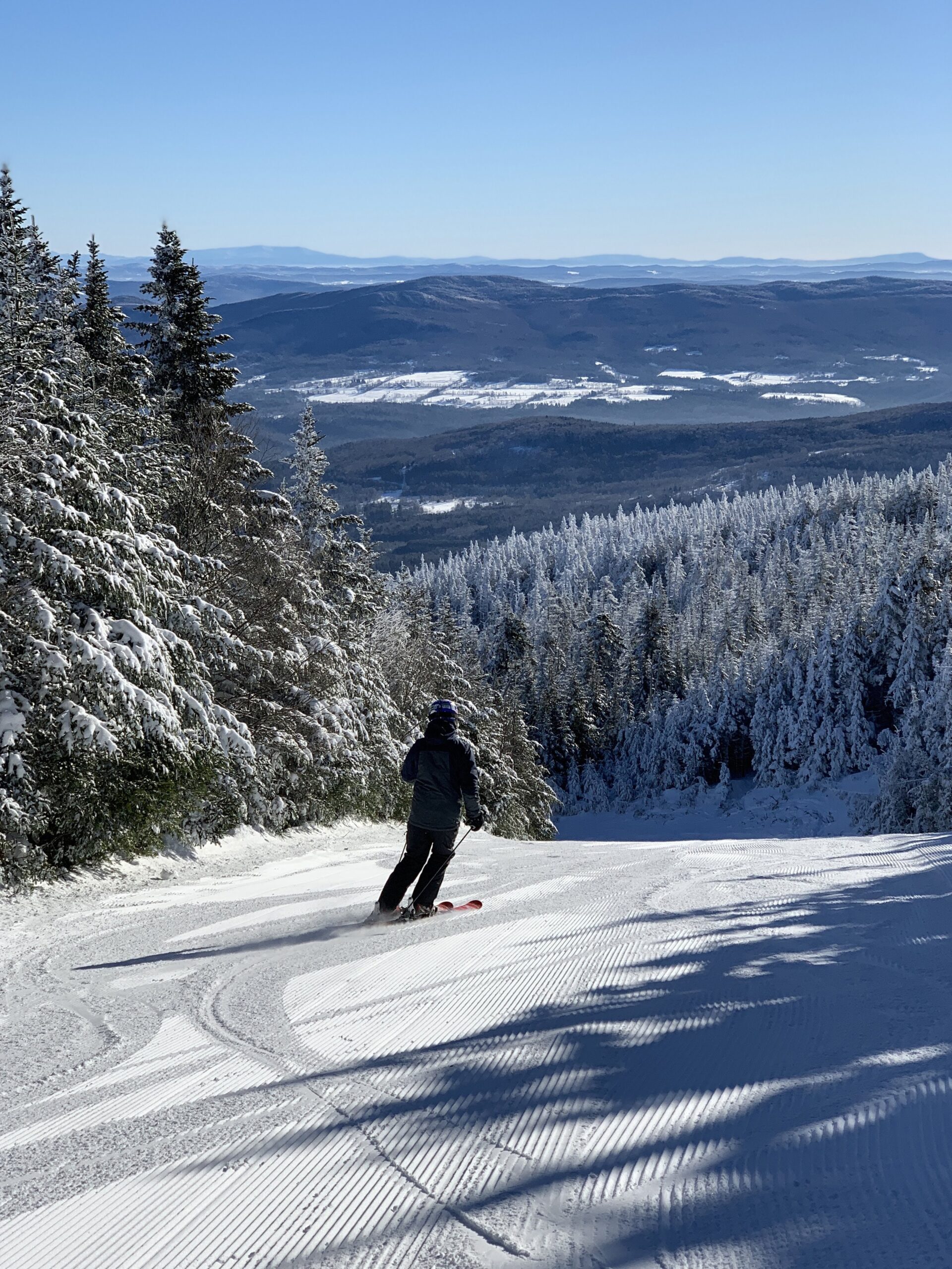 By the 2nd day we were more used to it and started to really enjoy ourselves. We skied about 90% of the named runs at Stowe over 2 days, including the VERY steep front 4 runs: Starr, Goat, National, and Liftline. I have to give the scary nod to Starr, which was an absolutely smooth slippery slope that you would NOT want to fall on. I wouldn’t exactly call it ice, but it was as close to ice as is possible to get an edge into. The lower part was fantastic though, as were the others. This was a bucket list item for me because we used to ski Stowe regularly when I was a kid growing up in Buffalo, and I always looked at that run as something to aspire to be able to ski. Mission accomplished 42 years later!