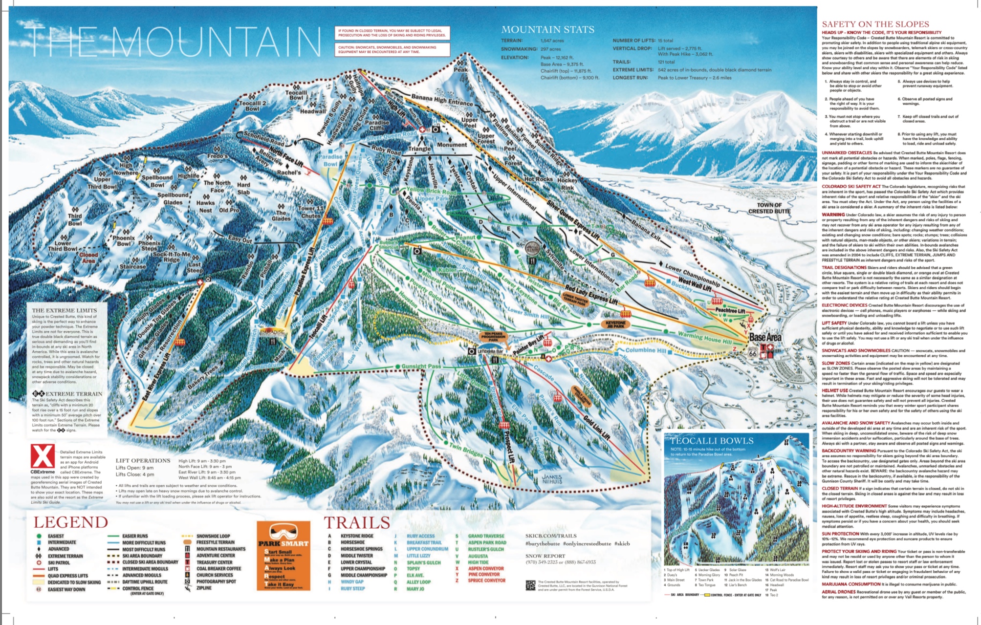 The first thing you need to understand about CB is that there are basically 2 reasons skiers would bypass the larger and easier to get to resorts in Summit County, Vail, or Aspen and go to Crested Butte: Steeps and the town/scenery. The location is remote and it is hard to get to unless you fly directly into Gunnison 32 miles away. Even though the mountain is only about 15 air-miles from the town of Aspen, it’s 173 miles of driving in the winter by road, and 252 miles to the closest major airport in Denver. It takes dedication to get there.