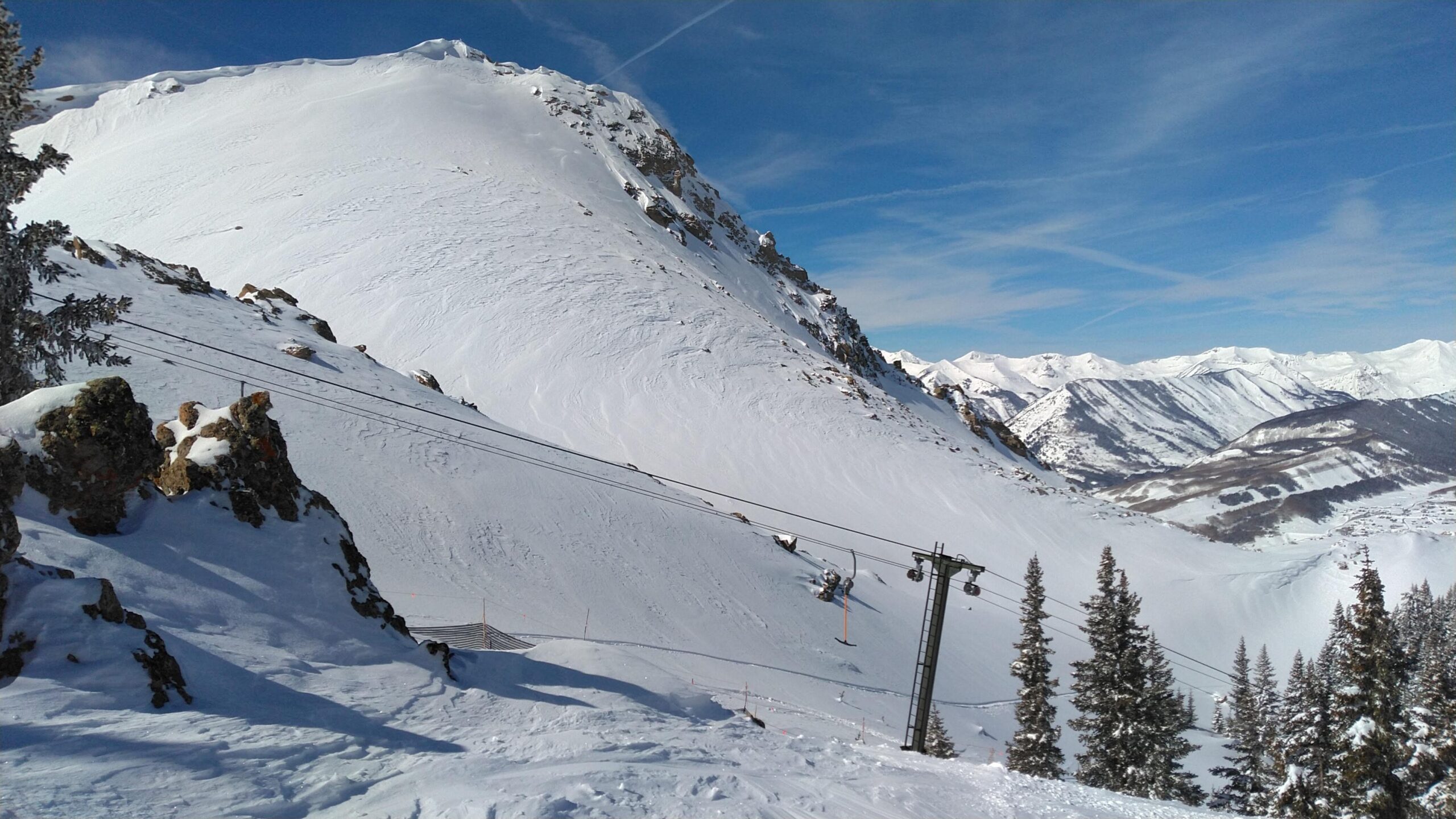 The High Lift is a t-bar that loads near the top of Silver Queen and takes you up to the highest lift-accessible altitude of 11,875′. From there you can ski the really scary stuff like Headwall and Big Chute. It also gives you access to Teocalli Bowl on the back side of the mountain. This was opened after I left in ’93 so this was the first time I ever skied it. It’s interesting terrain, but there is a significant hike out at the end so you have to be motivated to make the effort.