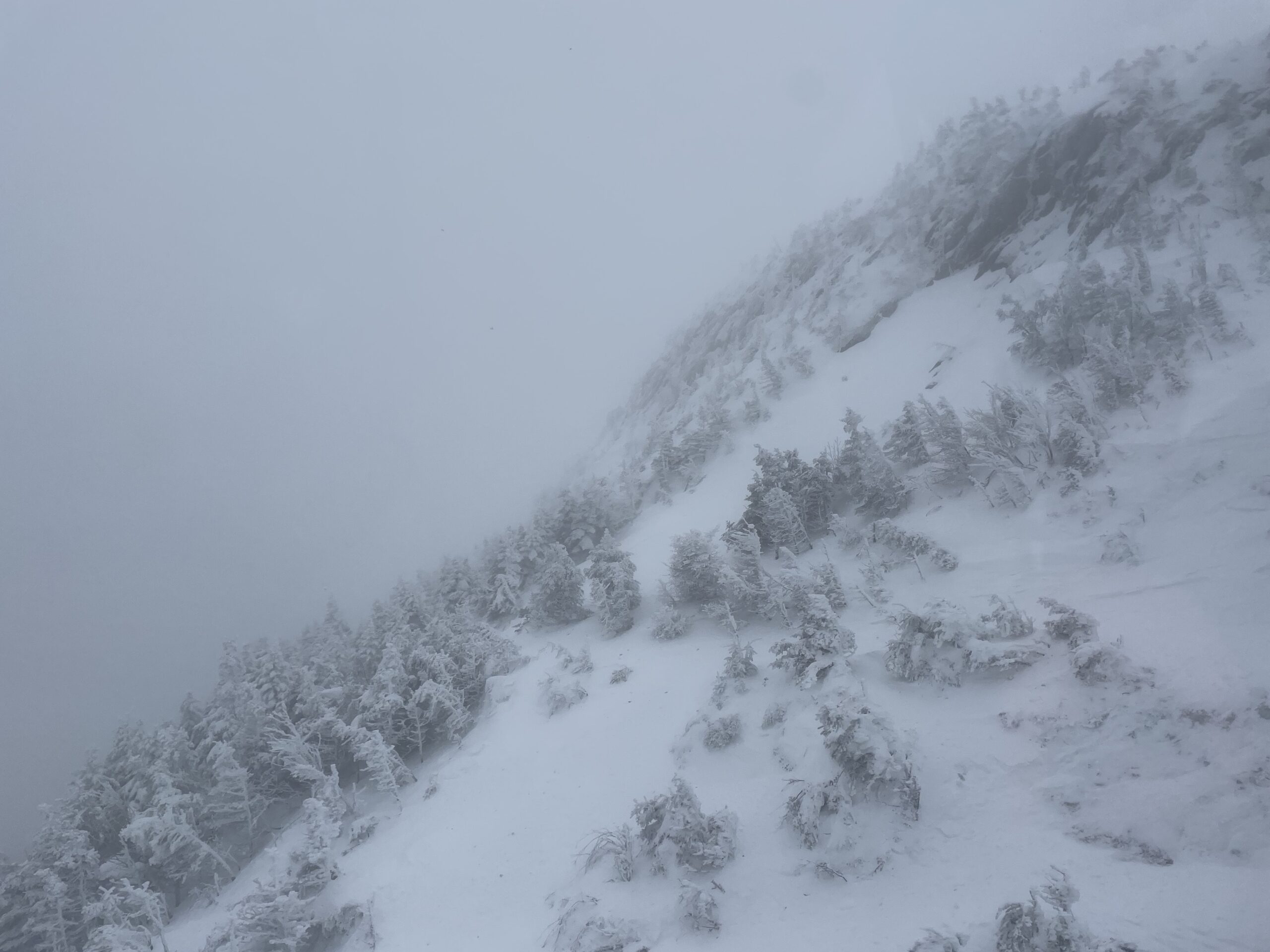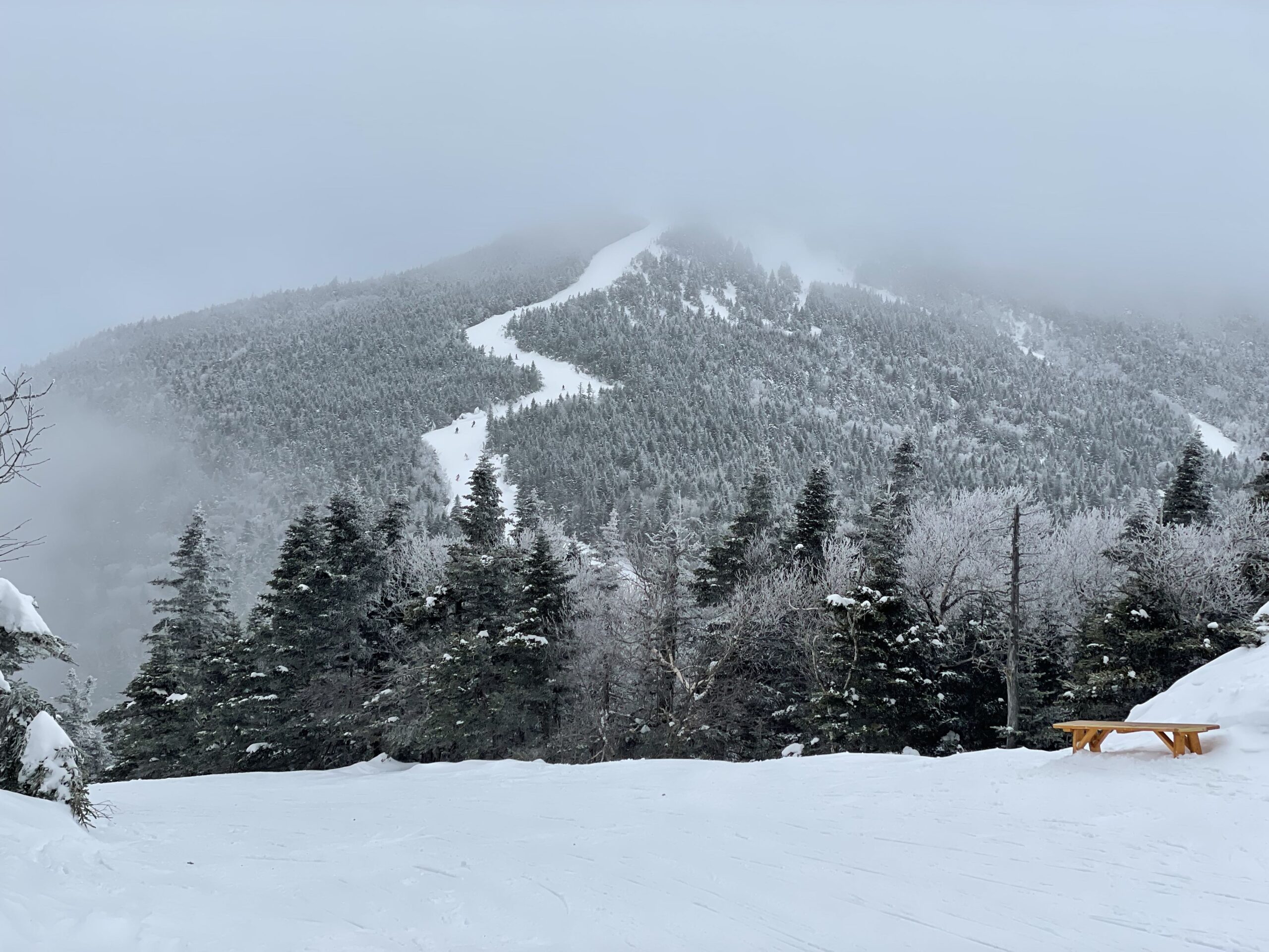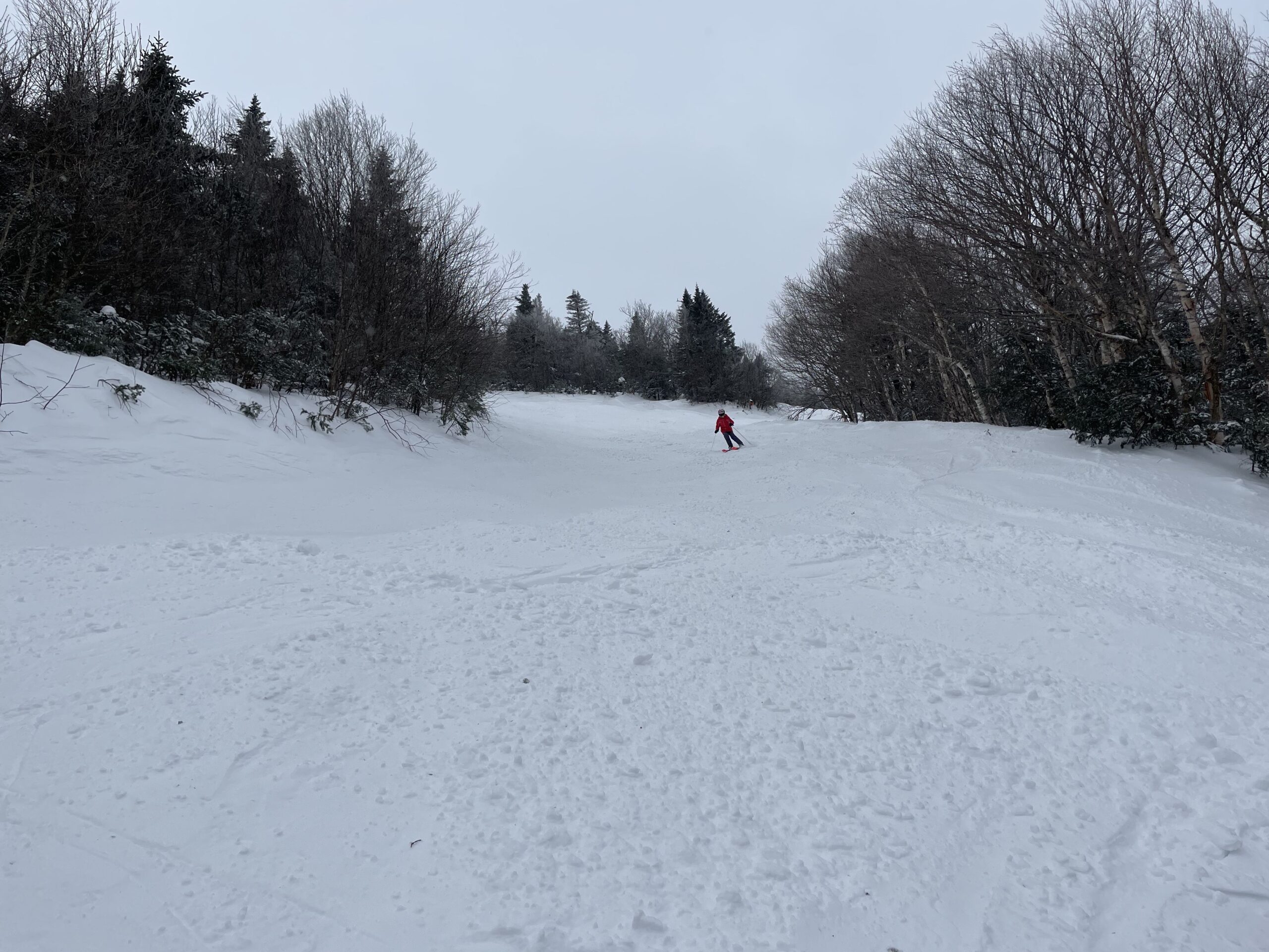 This time we just skied down the main run everyone was taking: Vermonter. That’s a great run and I’m sure the scenery is fantastic on a clear day. There is only one other way down from the top that isn’t crazy steep and that’s the Northway run which is the better one if you are going to lap the tram. Vermonter takes you so far away from the tram base that it’s miles of traversing to get back to the lift.