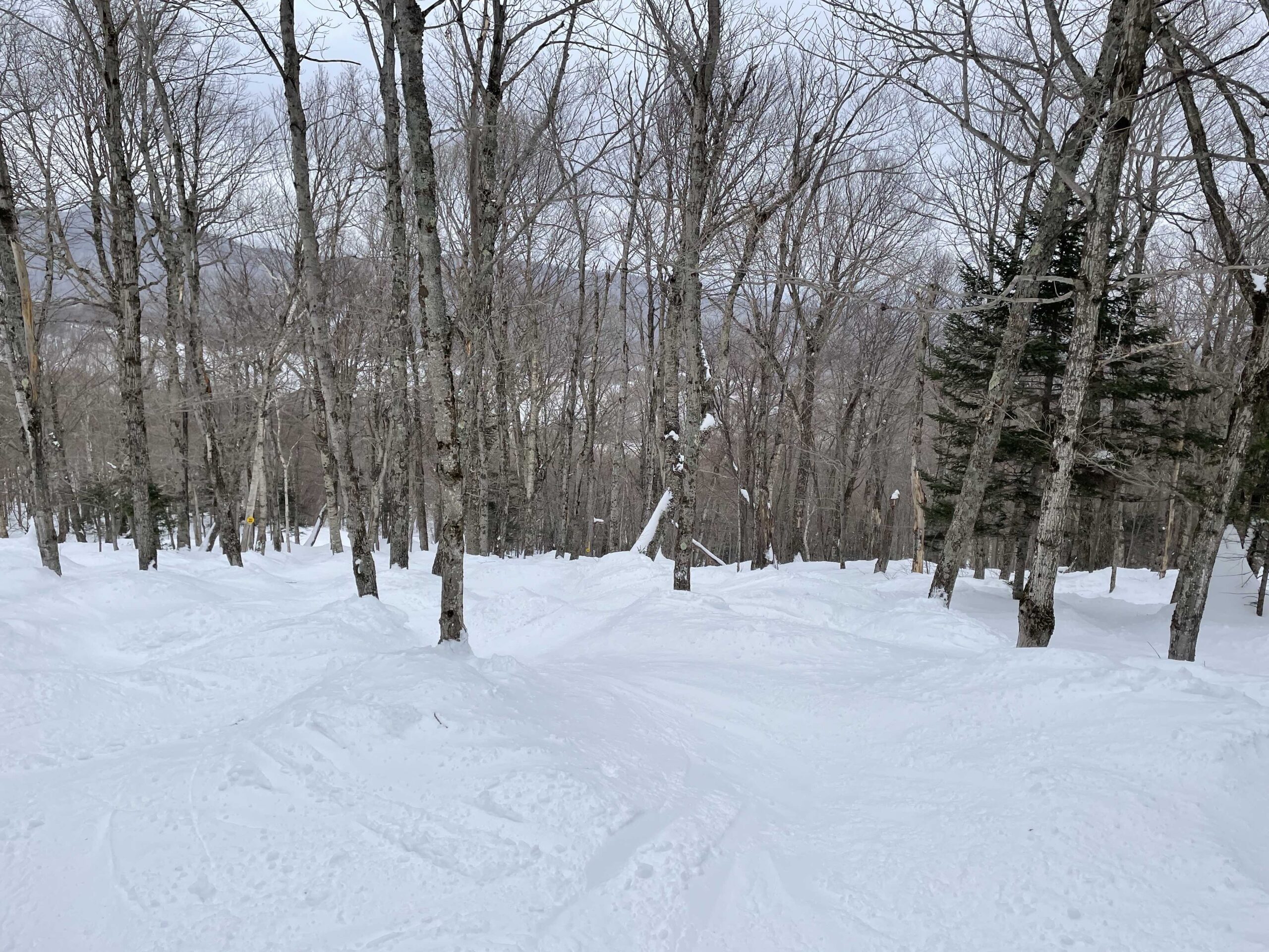 We skied Jay a few days after a big snowfall cycle, so we didn’t get the great powder conditions that the place has a reputation for. Still, the snow was noticeably better and deeper than anywhere else we skied on that 8-resort trip. It was pretty close to what we encounter as average conditions in the West. This is good.