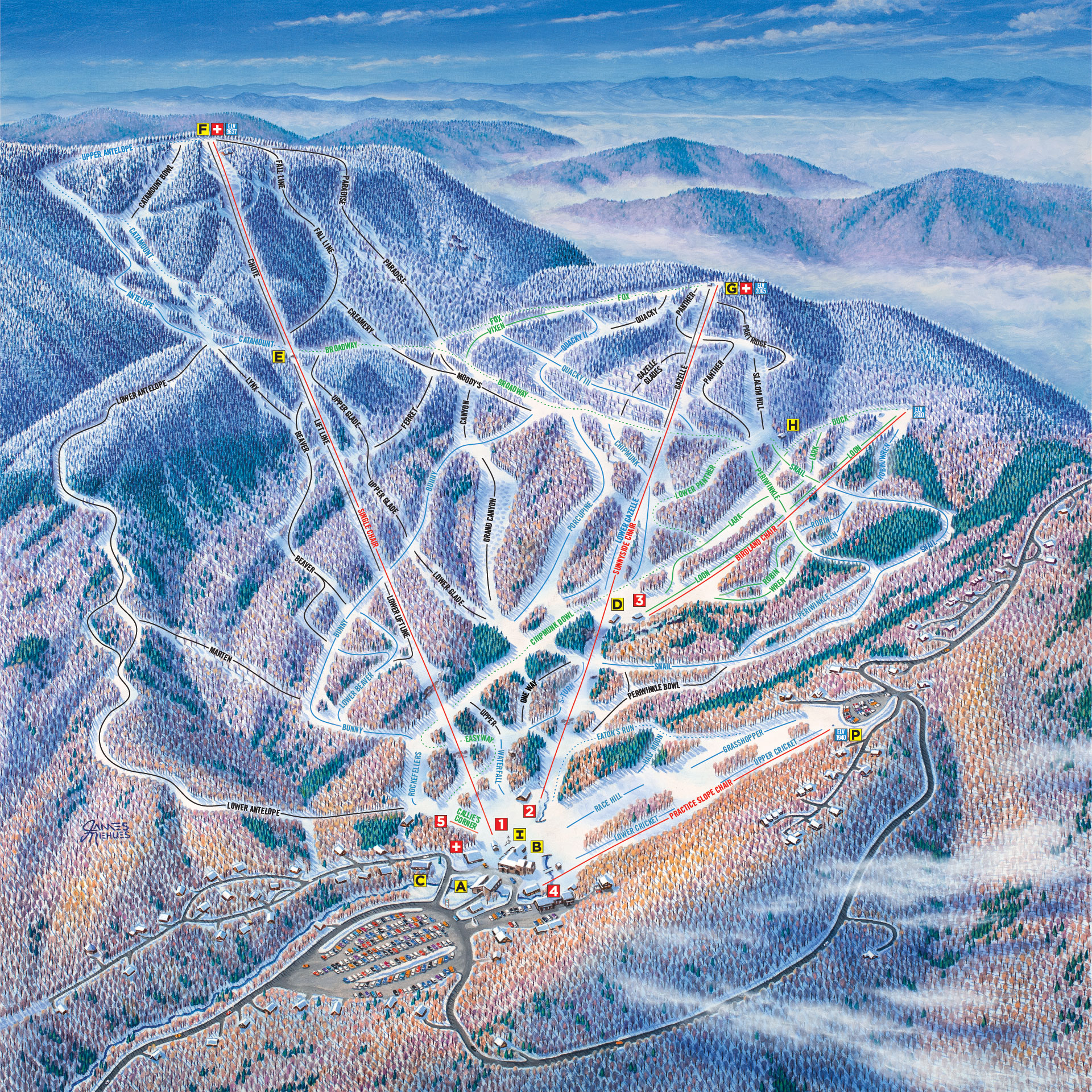 The most difficult run on the mountain is “Paradise”. This is often considered to be the most challenging run in the East on lists. It’s gladed, narrow, steep, and full of rocks and ice falls that in some cases must be skied (or aired) since there is no way around those. Getting to the bottom unscathed will give you a great sense of accomplishment!