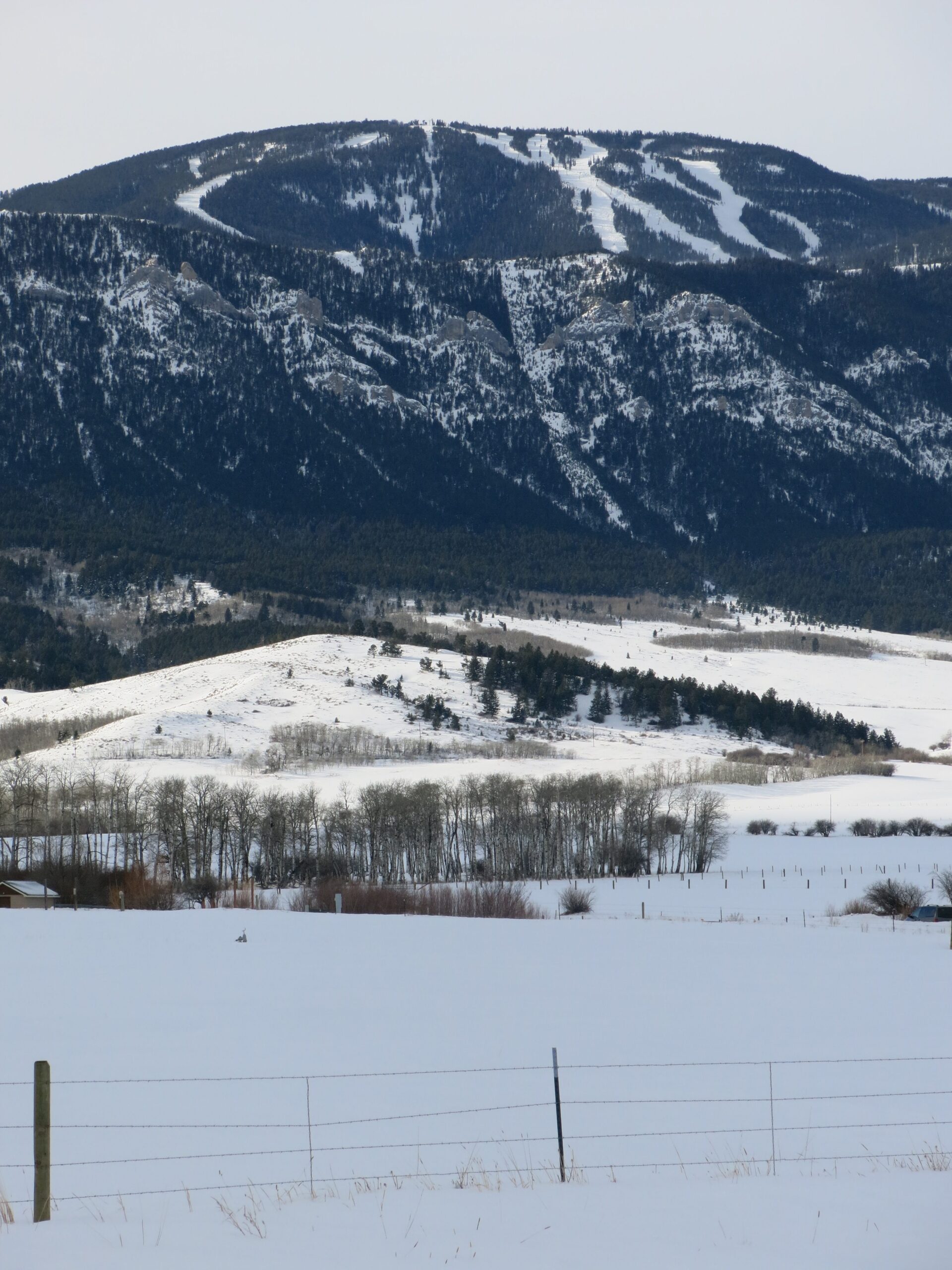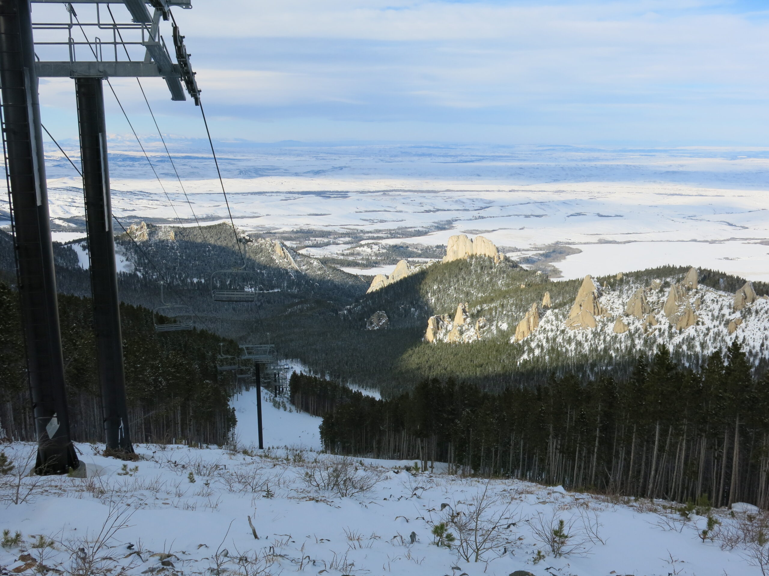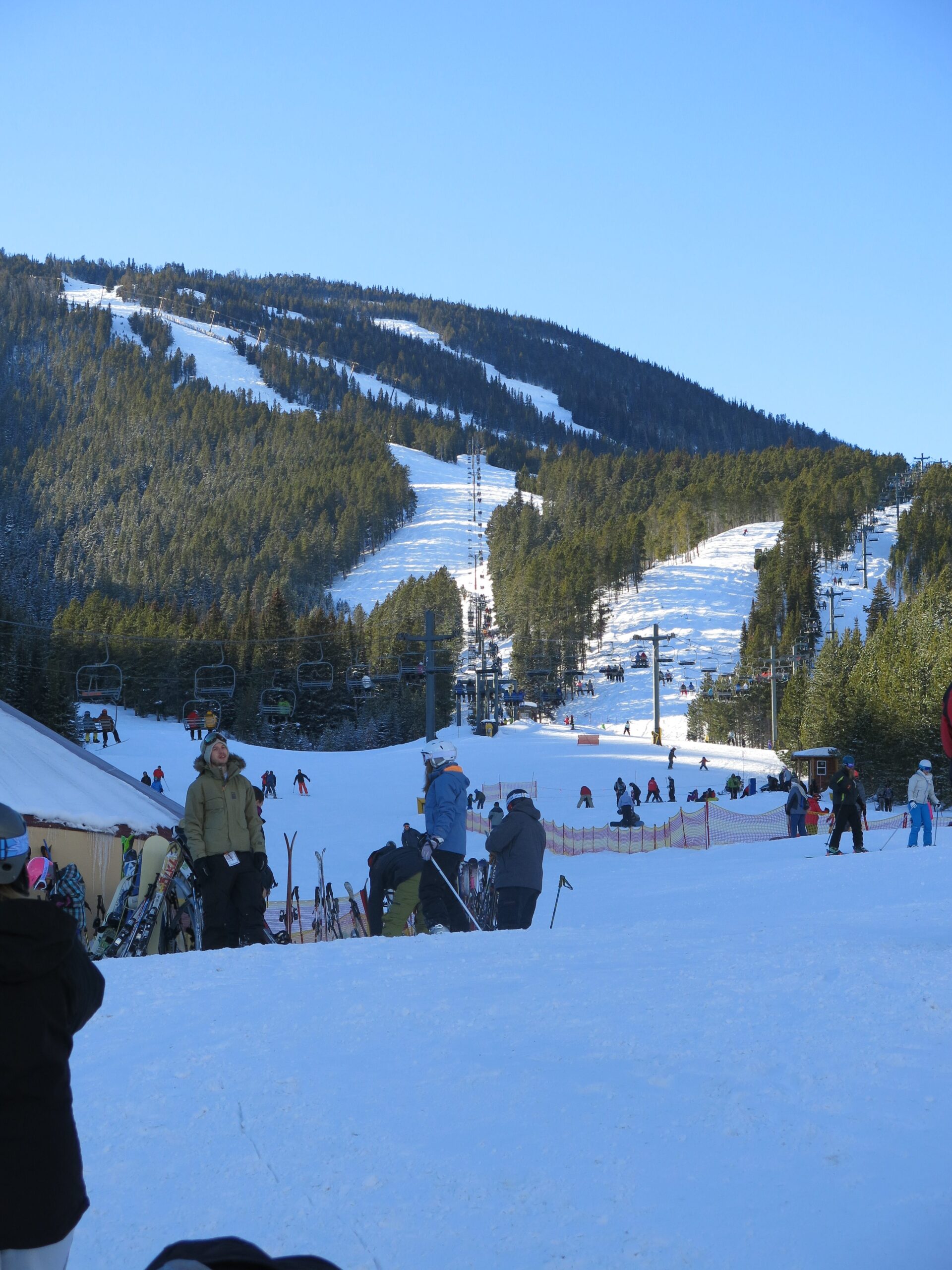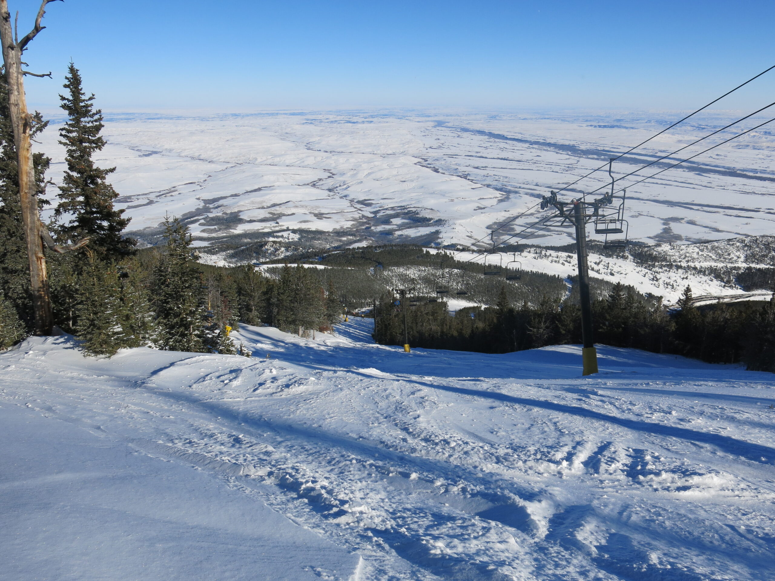 We skied Red Lodge over Christmas break, which means it was a bit early in the season and not everything was open. There are 2 high-speed quads that were not open yet, meaning that only old slow lifts were in operation. Strangely, the 2 quads serve areas that are NOT covered with snowmaking. The season before we visited neither one opened due to lack of snowfall. Red Lodge claims 500 acres of snowmaking which is actually a lot, and they had used it well to get the main part of the mountain open. We also lucked out with a 5″ snowfall the night before.