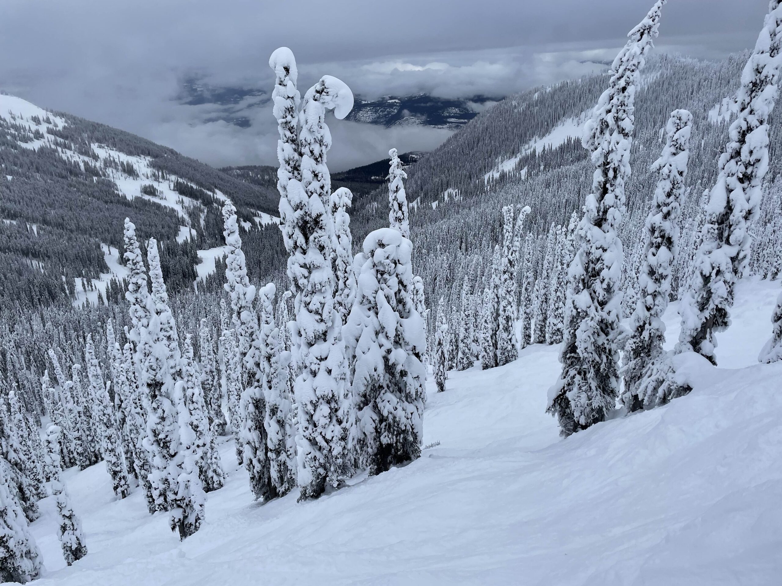 I first visited RED (they capitalize it) in 2011 during a very good snow year when I did one day at the resort and one at Big Red Cats guided snowcat skiing. That was the best cat skiing experience I ever had. It’s one of the largest snowcat skiing operations in the world at over 20,000 acres.