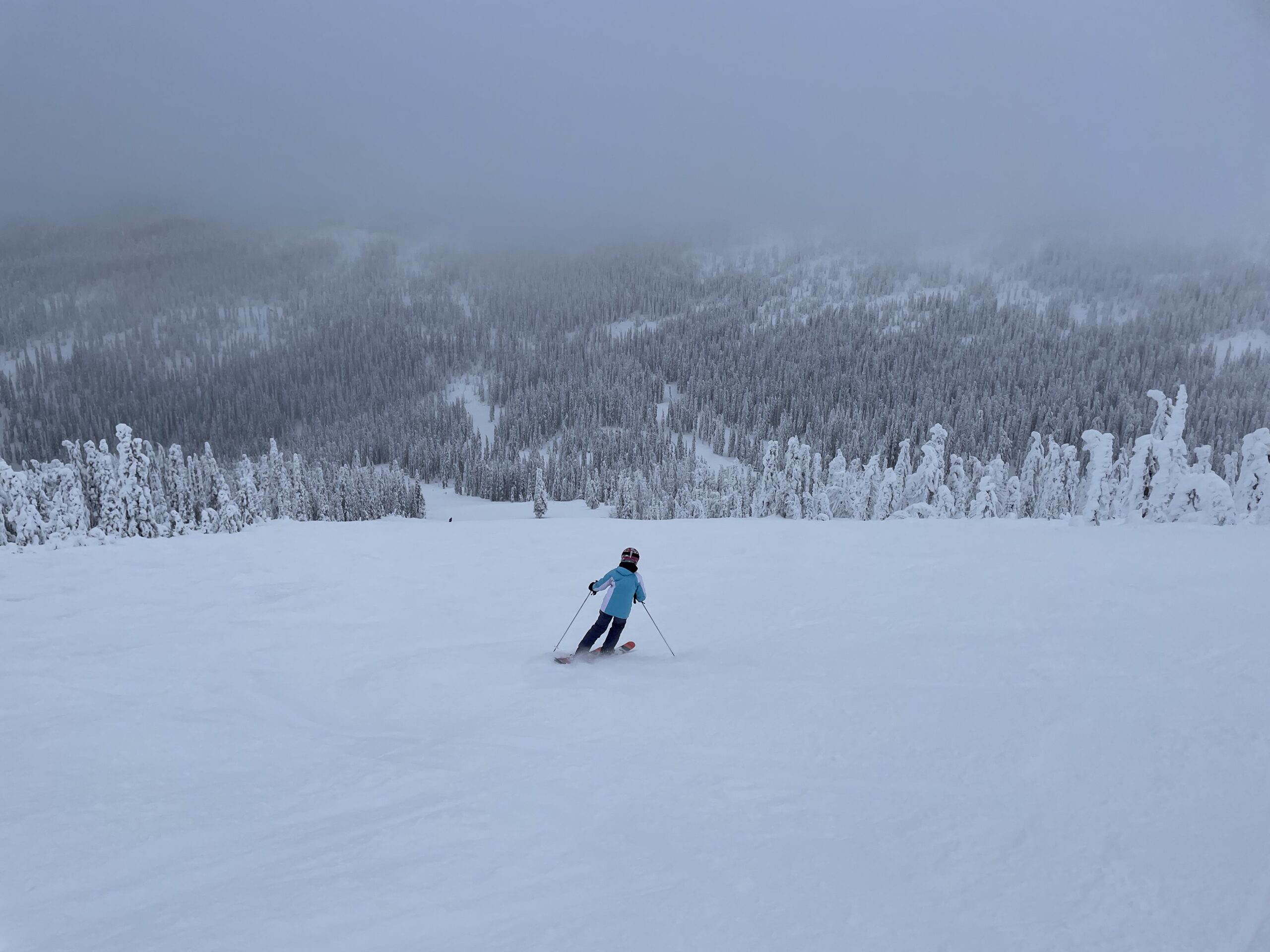 We didn’t spend much time in this zone because it’s low-intermediate at best, and only about 1,000 vertical feet, but it is great for the average skier and pretty much everything was groomed. It’s a good choice on a foggy day because it’s often below the fog line according to the mountain host we talked to.