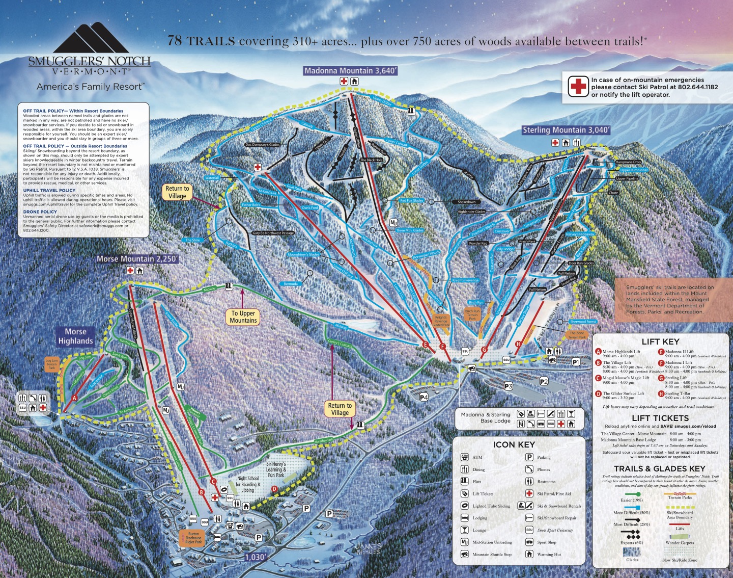 Midway run takes you from the top of Morse to Madonna/Sterling at Smugglers' Notch, March 2023