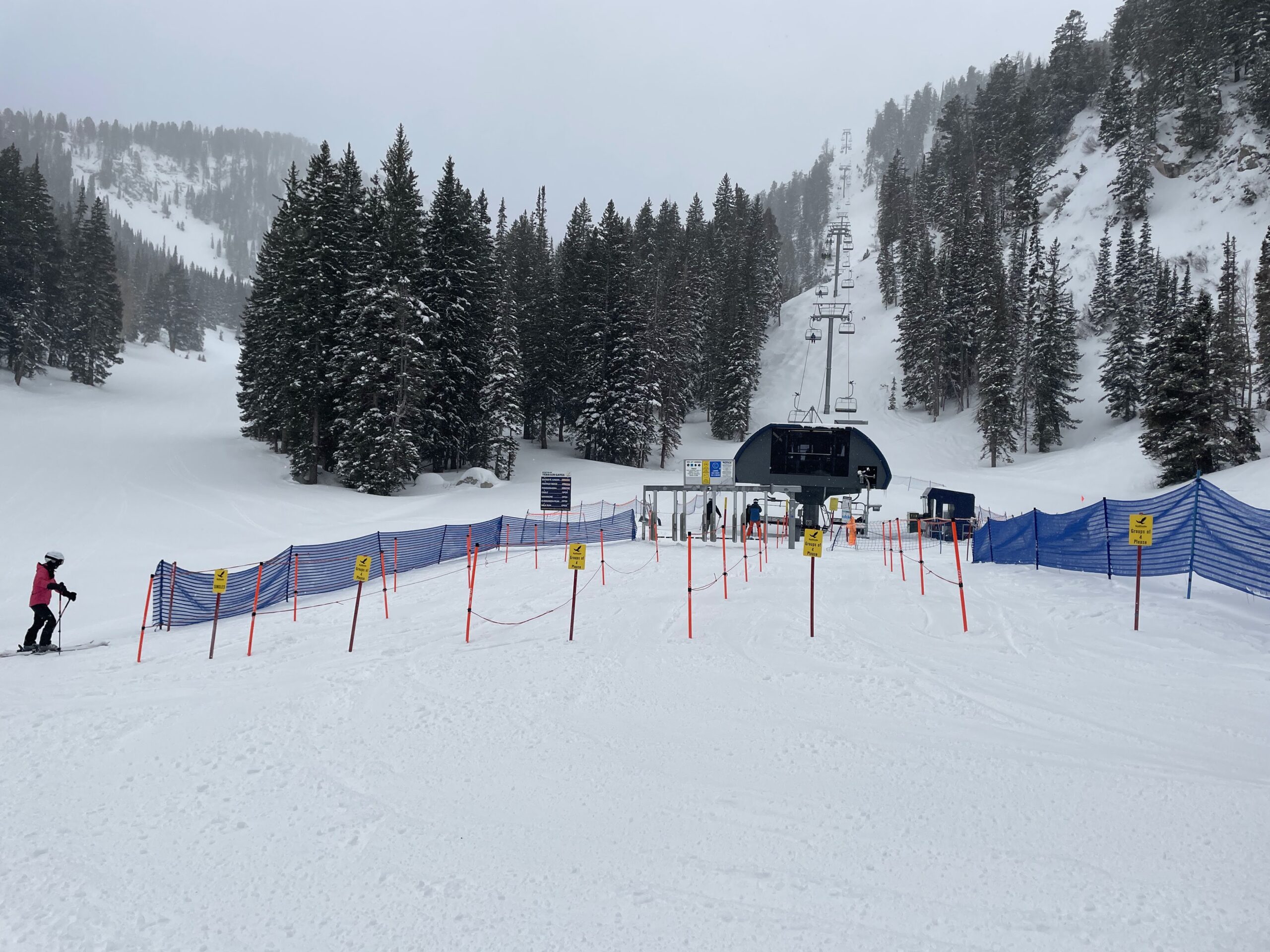 These lower mountain lifts open very early at 8AM. We’ve only seen this at a couple of east coast resorts and it’s definitely unique in Utah. Apex didn’t have much grooming and was mostly big bumps so we didn’t spend much time there. Moonbeam had some nice mellow runs to warm up on while waiting for the other lifts to open at 9AM.