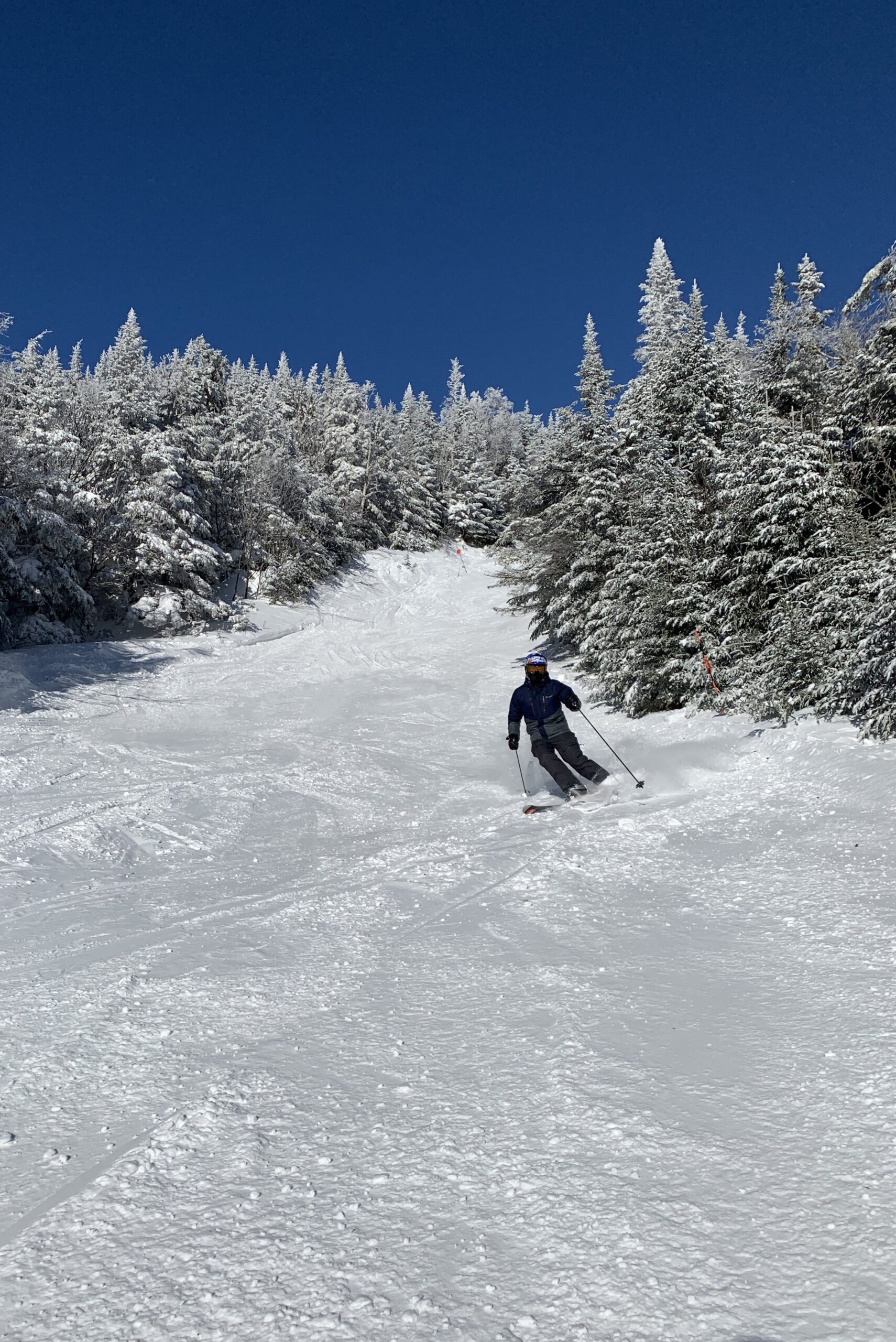 Even though it doesn’t feel like it, this is a small area in acreage which means that they can groom about 2/3rd’s of it nightly. In addition, an astonishing 83% is covered by snowmaking. That allows the resort to mostly do away with the unpleasant realities of skiing in the East where rain and icy slopes are not unexpected. It was the best snow we ever skied in the East.