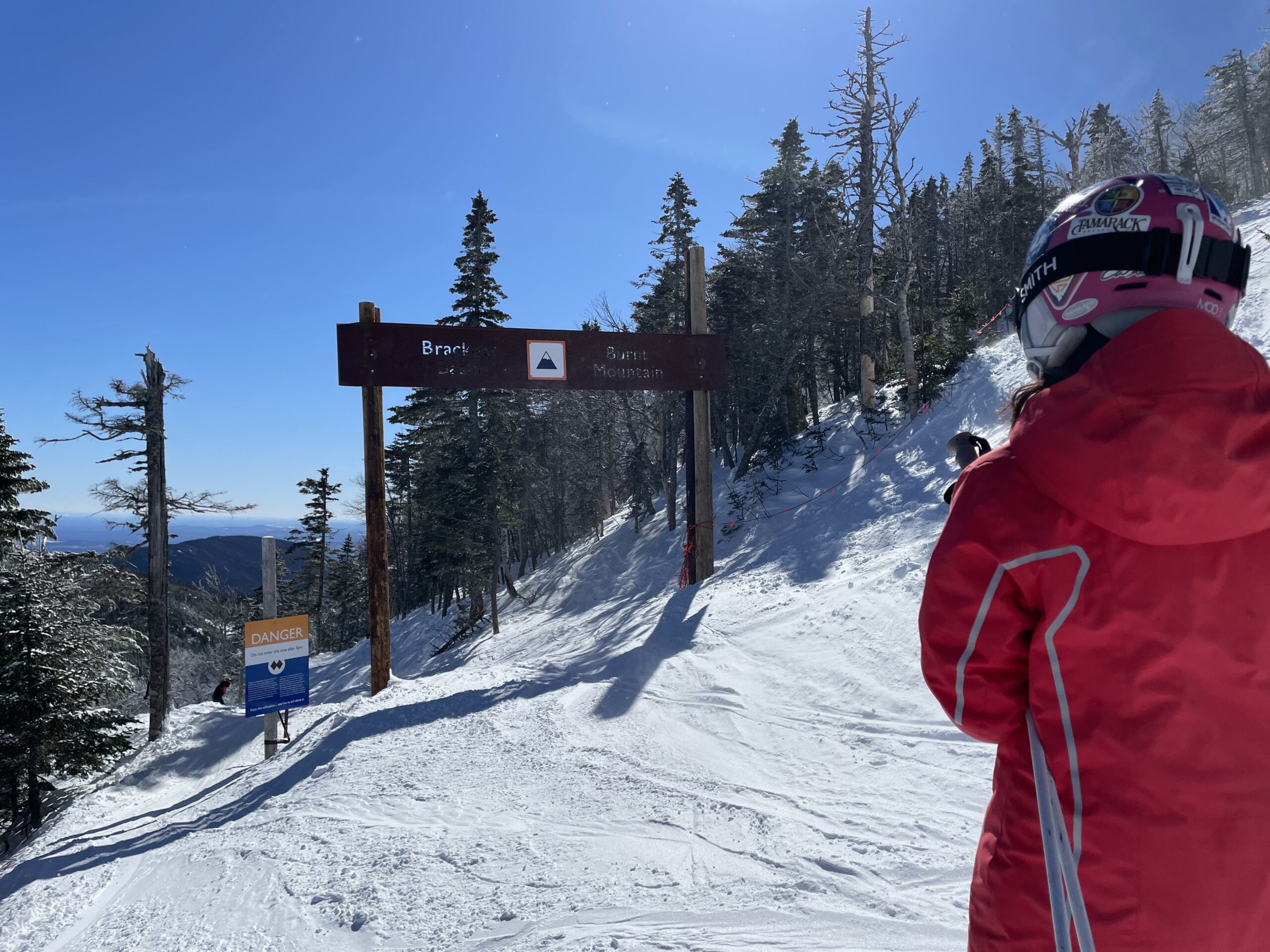 King Pine is the 3rd upper mountain chair and it’s another fixed-grip quad. For the size of this place it’s a little disappointing that the 3 upper mountain chairs are fixed-grip, but it does work well. The lift profiles are fairly steep so the rides are not excessively long and fixed-grip chairs are more reliable in bad weather. King Pine has some super wide steeper groomers and an interesting bump run on skier’s right “Ripsaw”. It’s also how you access Brackett Basin and there was a constant stream of people entering the gate at the top of the chair both days.
