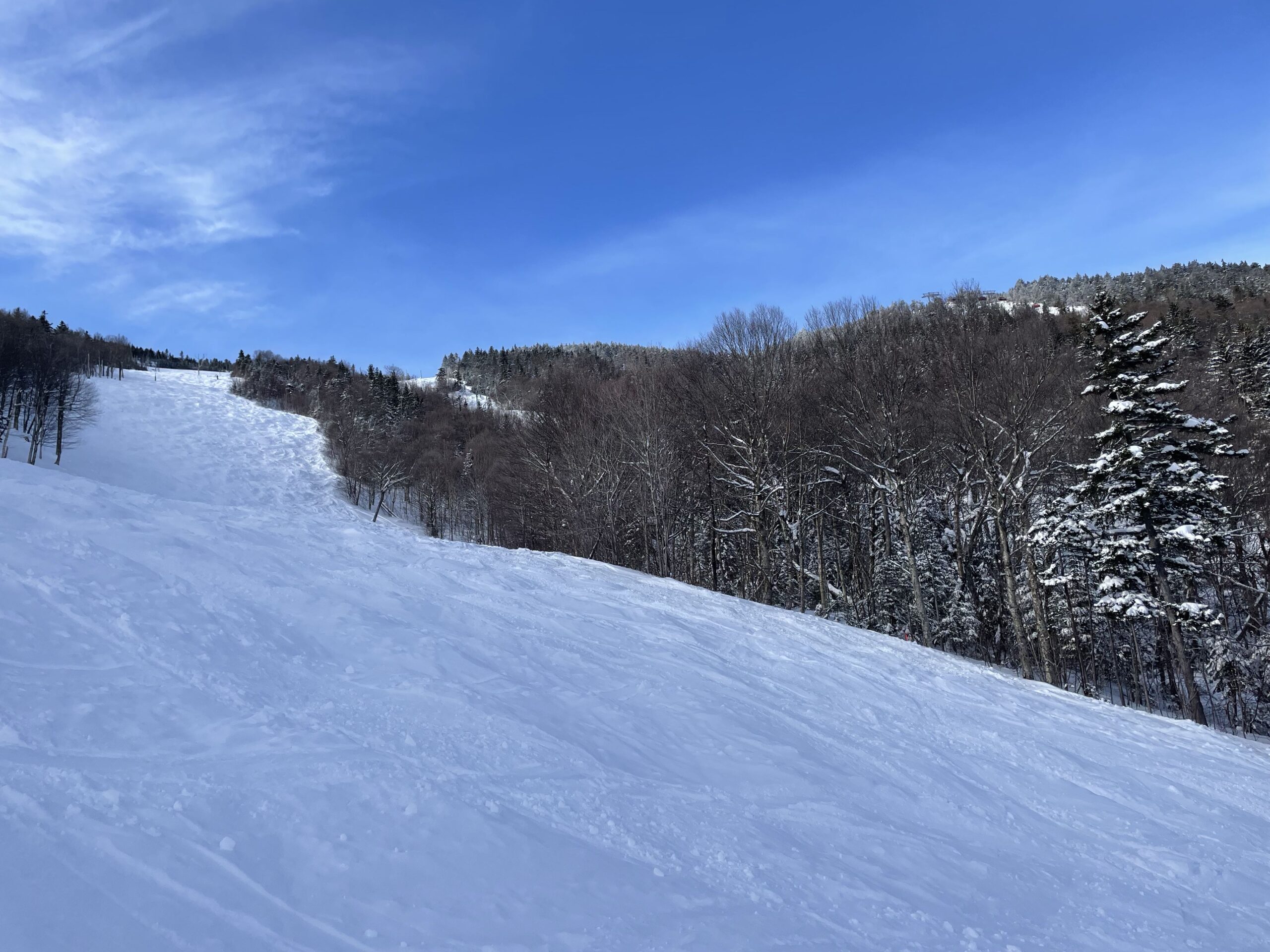 This trip to the northeast featured 8 different resorts and Sunday River was by far the most crowded. It didn’t start off well because there were lift issues at the South Ridge base area which resulted in a huge line at the Chondola. These things happen, but what was surprising is that by the time we started skiing the groomers were already bumping up. By lunch time the whole mountain was bumps. This isn’t what we usually find when skiing the northeast, but the heavy skier traffic means that’s going to happen when the snow is soft.