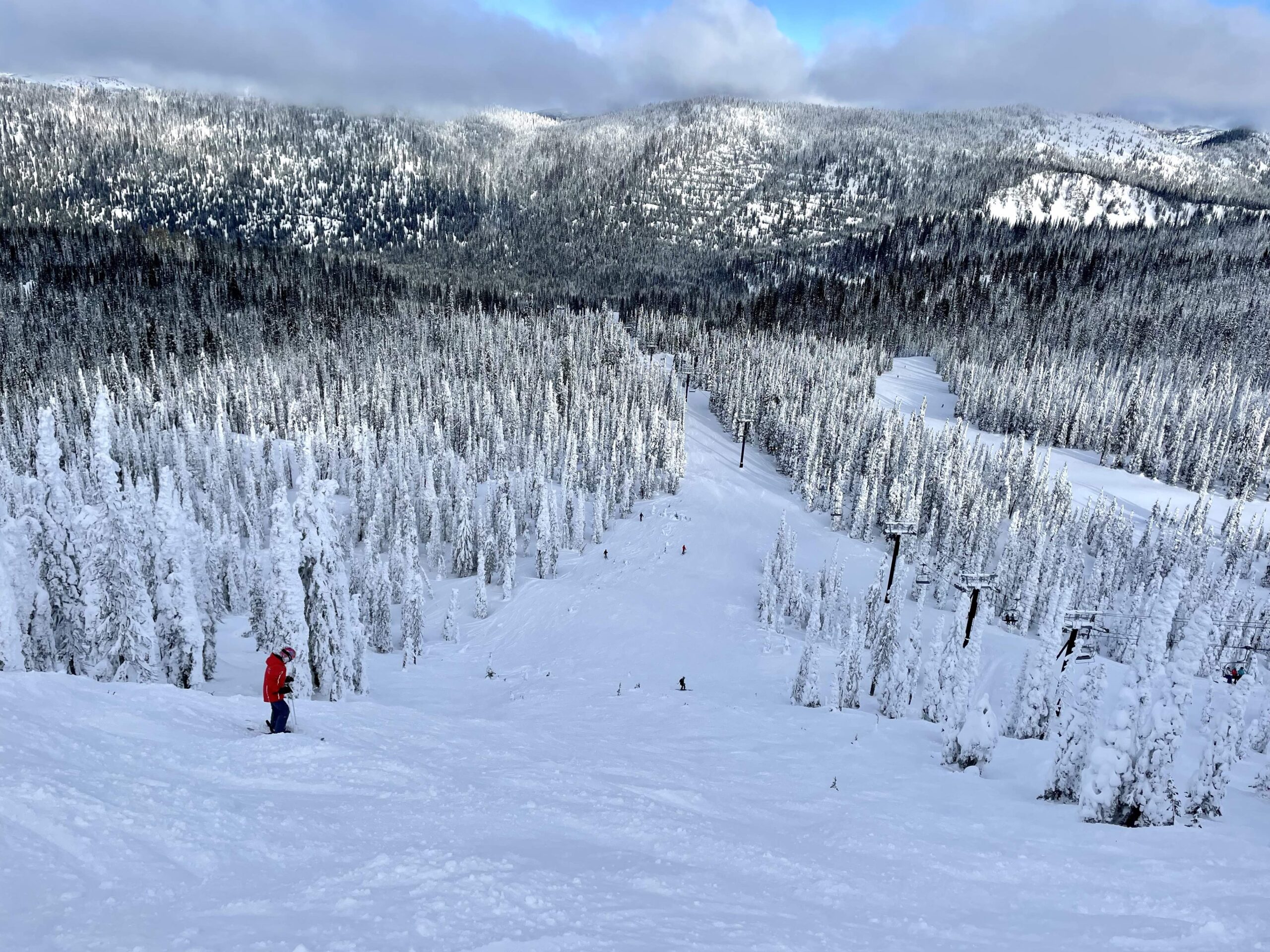 Our first day of skiing featured what we would come to learn was one of the better visibility days compared to average. They stagger lift openings so we started on the Swift Creek Express chair which opens at 9AM. Swift Creek has some of the best consistent intermediate groomers on the mountain. We appreciated the fact that everything was groomed on that chair, and it had a nice pitch for intermediate skiing.