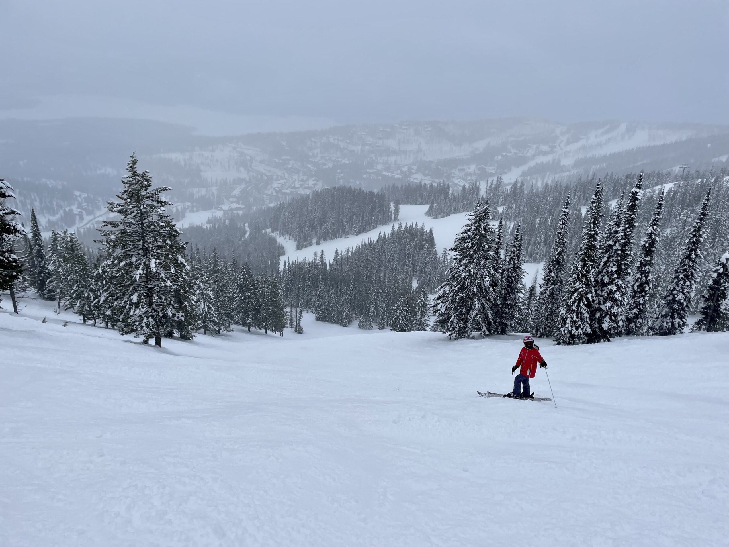 It was a good thing we took a lot of pictures on the first day and got a good feel for the layout of the mountain because the second day was super foggy and it never cleared up. This is the biggest problem with Whitefish. The clouds are pushed up against the mountain from the prevailing south winds and the moisture laden air rises and forms fog. Apparently this happens about 50% of the time, so make the most of clear days when they happen!